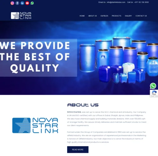 NOVA STARLINK is a specialized company providing supply of Chemicals and related products to the oilfield sector and there vision is to fulfill their customers requirements so we made a unique informative company website as per website standard and website support still goes on.